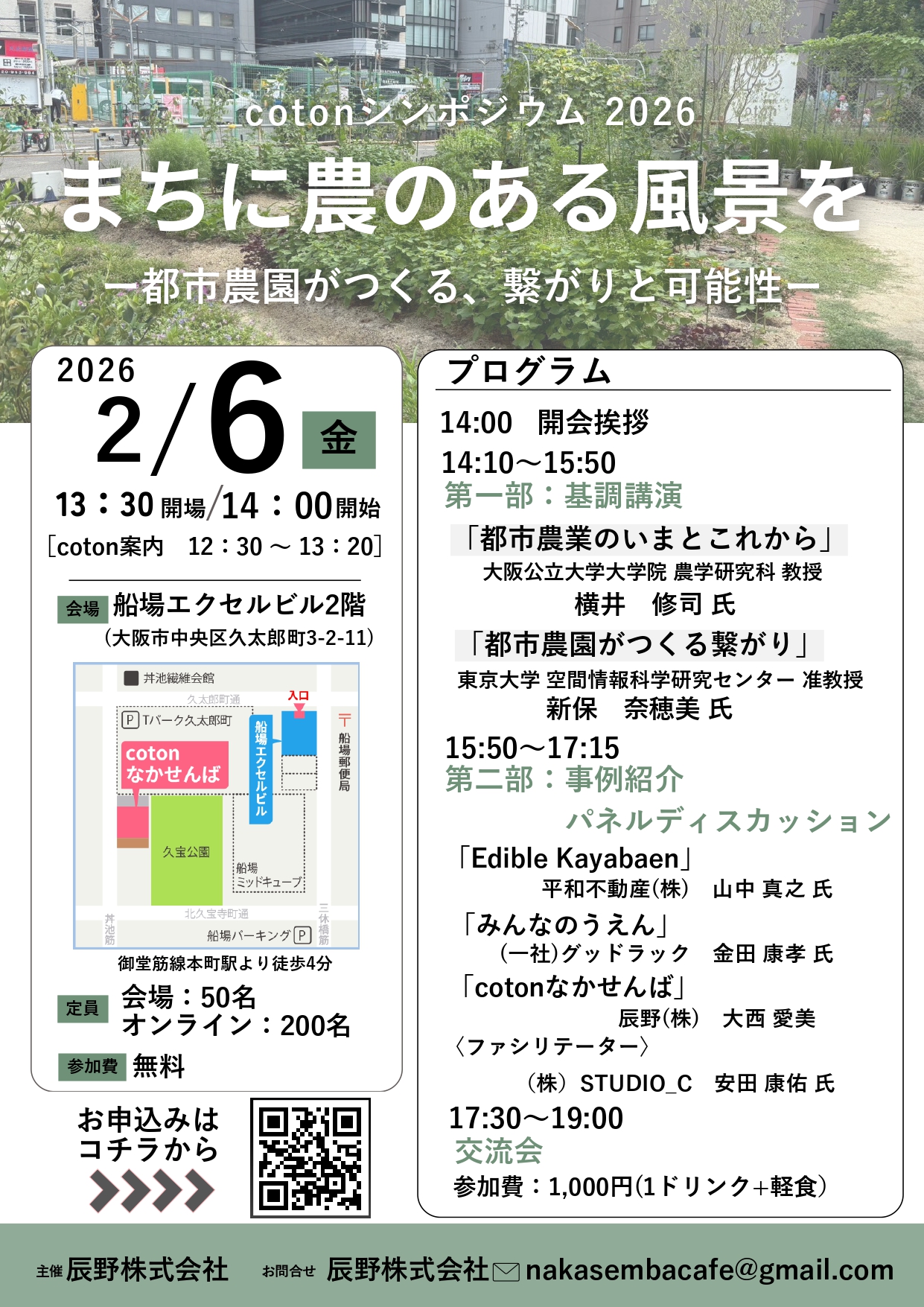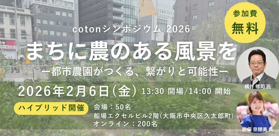 【イベント情報】cotonシンポジウム 2026「まちに農のある風景を」-都市農園がつくる、繋がりと可能性ー【オンライン有り】イベントを開催します。